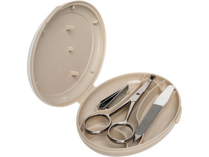 Περιλαμβάνει ψαλίδι με στρογγυλεμένες άκρες, λίμα και νυχοκόπτη.