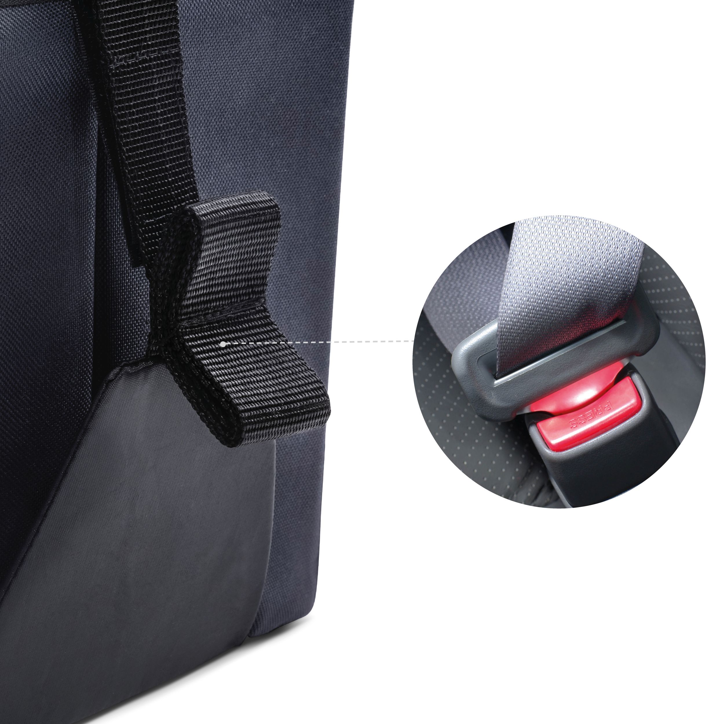 Για ασφαλή συγκράτηση στο πίσω κάθισμα του αυτοκινήτου σας, ο οργανωτής αυτός μπορεί να στερεωθεί με τη ζώνη ασφαλείας του αυτοκινήτου σας!