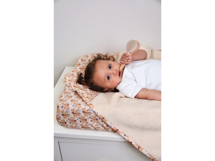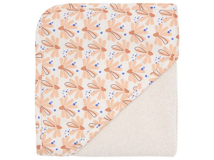 Ζεστή πετσέτα με κουκούλα από τη LUMA babycare με όμορφο μοτίβο λουλουδιών Flowerfever.